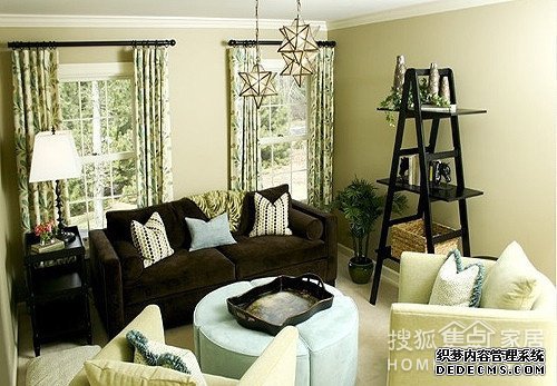 如果能利用色調(diào)的選擇擴(kuò)展小客廳的心理空間和視覺空間,那就可以取得事半功倍的效果。如冷色調(diào)具有擴(kuò)散和后退性,較為適合小戶型。同時(shí),室內(nèi)對比不能過分強(qiáng)烈,最保險(xiǎn)的是墻面和地面的顏色選用淡雅的色調(diào).家具顏色最深,頂面顏色稍淺于墻面或與墻面同色,這樣可以保證空間的色彩協(xié)調(diào)性,讓人有舒適寬敞的觀感。